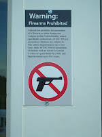 Ja kun Suomessa ja Saksassa on kielletty tuomasta jaateloa kauppaan, taalla kielletaan tuomasta aseita. Olemme Amerikassa, huom!