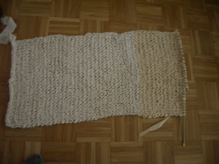 Katso kuvista ohjeita, jos niistä saa jotain selvää. Tästä työstä tulee kylppäriin matto! Voi siitä tehdä puseron itselleen tai kangaskassin, joista olen tekemässä vähän ohuemmasta kankaasta. Kuvat nettiin tulevat myöhemmin.