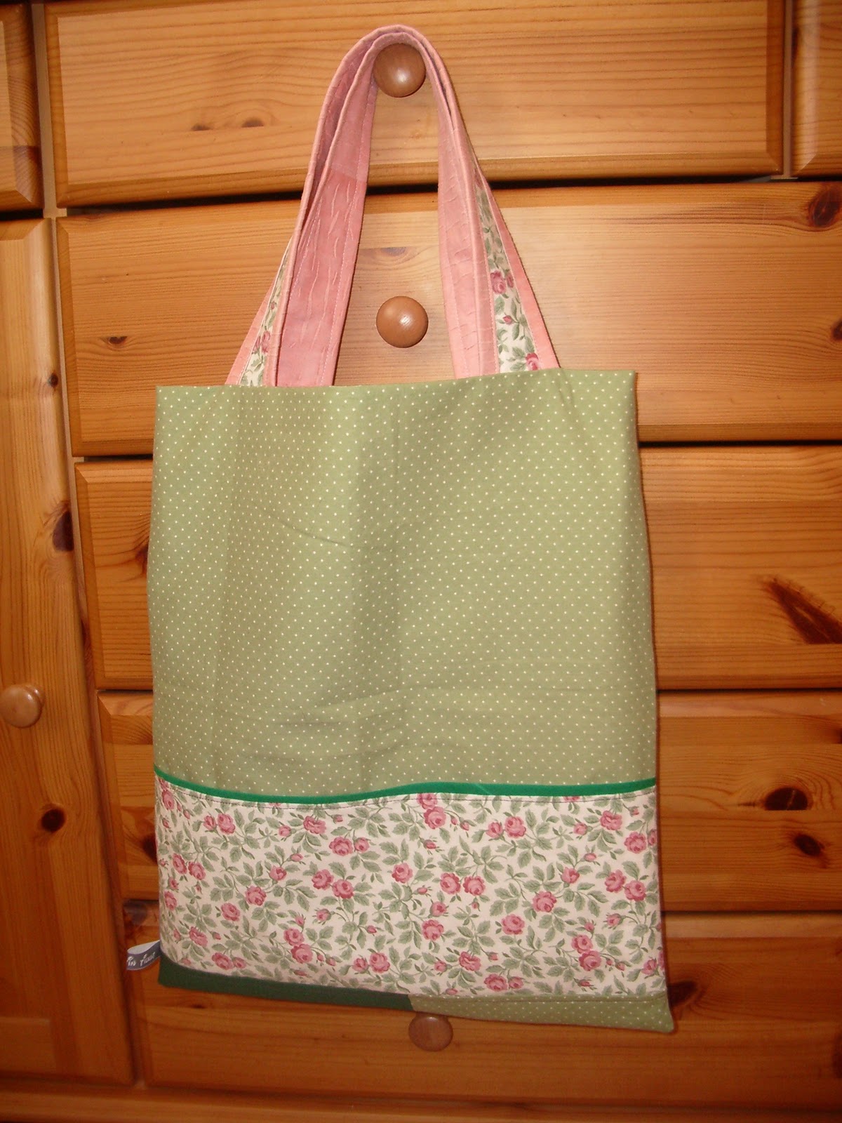 | "kirjalaukku". Kankaan sain Riitalta. Tähän laukkuun tein vetoketjun, jonka ompelin suoraan kassiin, ilman erillistä lämpärettä, jonka ompelun olen oppinut ompeluopinto-ohjaajaltani Tilkunviilaajista. |