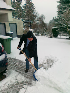 Guido als "Testfahrer" für eine neue Finnische Schneeschaufel. Tänä aamuna Guido testasi uutta Suomesta tuotua lumilapiota. Kesti ensilumen.