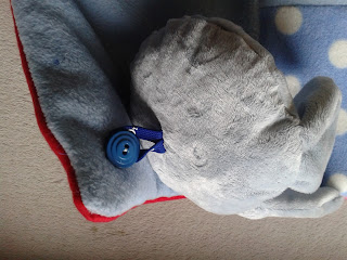 Pää on kiinnitetty napilla, joten sen saa helposti irti. Pesun ajaksi se on aika järkevää, kun päätä ei varmaan tarvitse pistää niin usein pesukoneeseen. Suosittelen pestäväksi pesupussissa, sillä fleece on aika ohutta ja repesi ommellessakin aika helposti.