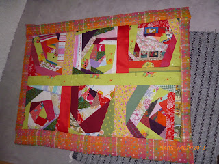 Lauantaina ja sunnuntaina on Bechenin seurakuntasalilla kirjanäyttely ja siellä on pieni pöytä ja nurkkaus minun tilkkutöitäni varten. Olen ommellut hulluna lisää töitä, kun kaikki kassit ovat lähteneet aina jonkun vierailijan mukaan ja nyt alkaa olla jo hätä kädessä, kun ei ole mitä laittaa esille.