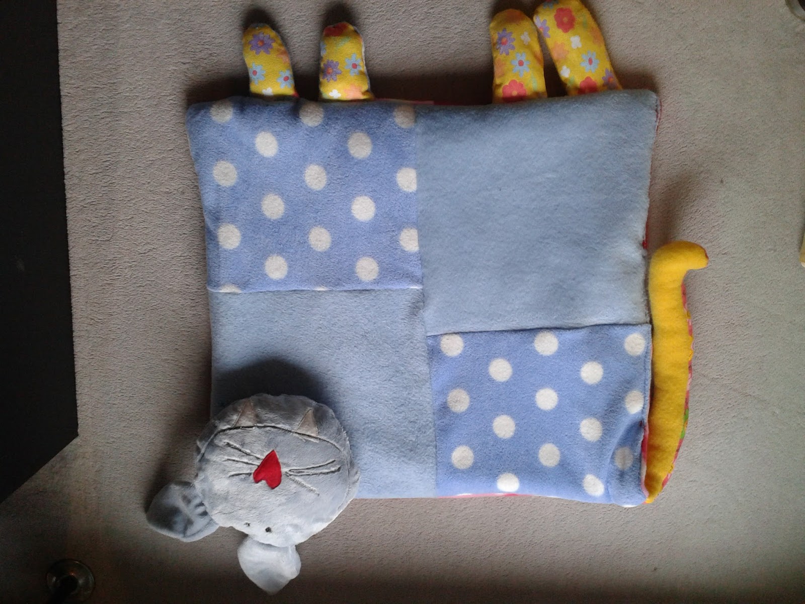 Finally at home, back to normal day schedule = sewing for kids! This is for Julia. A little cat pillow. The head is removable, made with a little button. If this pillow is too big for Julia, she / Anna can take the head off and Julia can play and cuddle just the head of the cat.