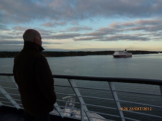 Merellä oli liikennettä enemmän kuin kehä kolmosella. Yhdellä silmäyksellä näki 5 laivaa (meidät mukaan lukien) Meri oli peilityyni eikä minunkaan tarvinnut syödä pahoinvointitabletteja. Menomatkalla noussut kuume haittasi puffettipöydän herkuttelusta. Paluumatkalla otin sitten takaisin menetetyt kalorit ja kilot. Helsingistä Tukholmaan matkalla törmäsin kirjaimellisesti ex-mieheni pikkuveljeen, jonka näin viimeksi 30 vuotta sitten. Nyt hän oli 50-vuotisjuhliaan viettämässä. Piti ihan pysähtyä hänen pöydän ääreen ja kysyä: "anteeksi nyt, mutta saanko kysyä kuka sinä olet?" Olin sataprosenttisen varma, että Hutun Petrihän se siinä Lahdesta, mutta ajattelin pelastaa vielä maineeni ennenkuin heittäydyn tuikituntemattoman miehen kaulaan, varsinkin, kun vastapäätä istui viehättävä naisihminen...