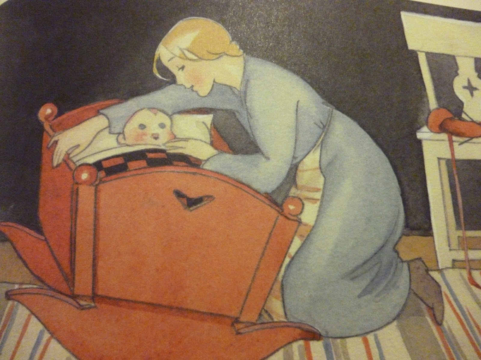 Meine liebe Freundin hat mir das Babybuch von Martta Wendelin geschickt. Wunderbares Buch. Ich habe immer die Bilder von Martta Wendelin geliebt. So wunderschön altmodisch gezeichnet über das glückliche Familienleben, dass nicht mehr existiert – oder vielleicht nie so war. Nicht mal bei Martta Wendelin, nur in den Bildern, die sie gemalt hatte. So ruhig, so harmonisch und ausgeglichen, dass man ein gutes Gefühl bekommt, wenn man nur die Bilder betrachtet.