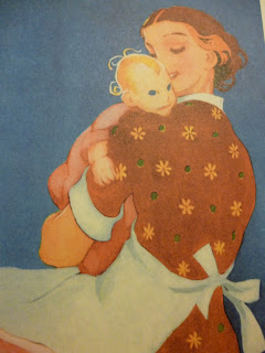 Sain ystävättäreltäni Vauvakirjan. Martta Wendelinin kuvituksin. Aivan ihana. Olen aina rakastanut Martta Wendelinin vanhanaikaisia, täydellisen perheen ja rauhallisen onnen kuvia. Sellaisia, jollaiseksi jokainen kuvittelee onnellisen perheen. Sellaisen, jollaista tuskin koskaan todellisuudessa tapaa. Ei edes Martta Wendelinin elämässä, mutta hänen maalaamissaan kuvissa. Niistä huokuu sellainen tyyneys, että pelkästään kuvia katsomalla tulee hyvä mieli.