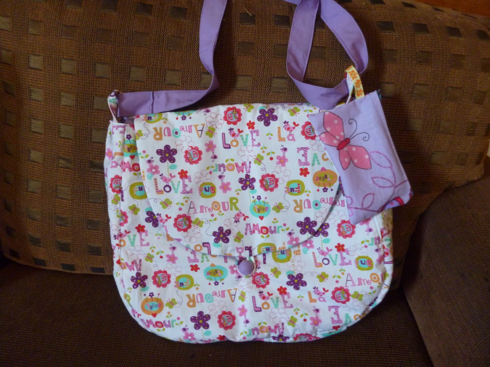 Kiva laukku, varmasti mieleinen pikkutytöllä. Mieleeni juolahti että olen juuri ompelemassa päiväpeitettä, jossa värit ovat vaaleapunainen ja -sininen aikuiselle naiselle....hmm-mmm. Noh, ehkä laukkuna se on vähän eri asia:)) Peiton saaja pyysi itse näitä värejä ja kovin vaikealta ajatus minusta ensin tuntui mutta yritän kuitenkin:)