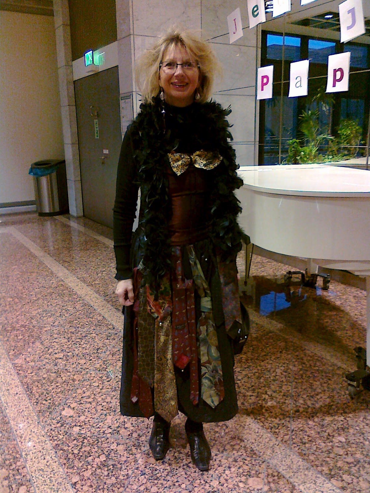 Rion tai Venetsian karnevaaleja ei voi verrata Saksan karnevaaleihin. Kylmässä (-10 tällä hetkellä) hytisevät saksalaiset eivät ole ehkä yhtä seksikkäitä kuin paljaspintaiset riolaiset tai yhtä tyylikkäitä kuin italialaiset, mutta täällä Kölnin alueella karnevaalit ovat värikkäät, lupsakkaat ja täynnä tunnelmaa. Puvuista ei puuttunut mielikuvitusta eilenkään. Minulla oli kraraveista koottu hame ja pusero, koristeltu vanhoista helminauhoista irronneista helmistä ja tonttulakkien kulkusista. .Korviin ripustin joulukuusen oksilta otetut lasikoristeet. Kilisin ja välkyin kuin kuusipuu.