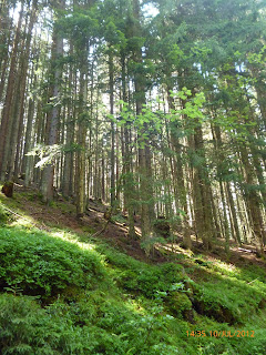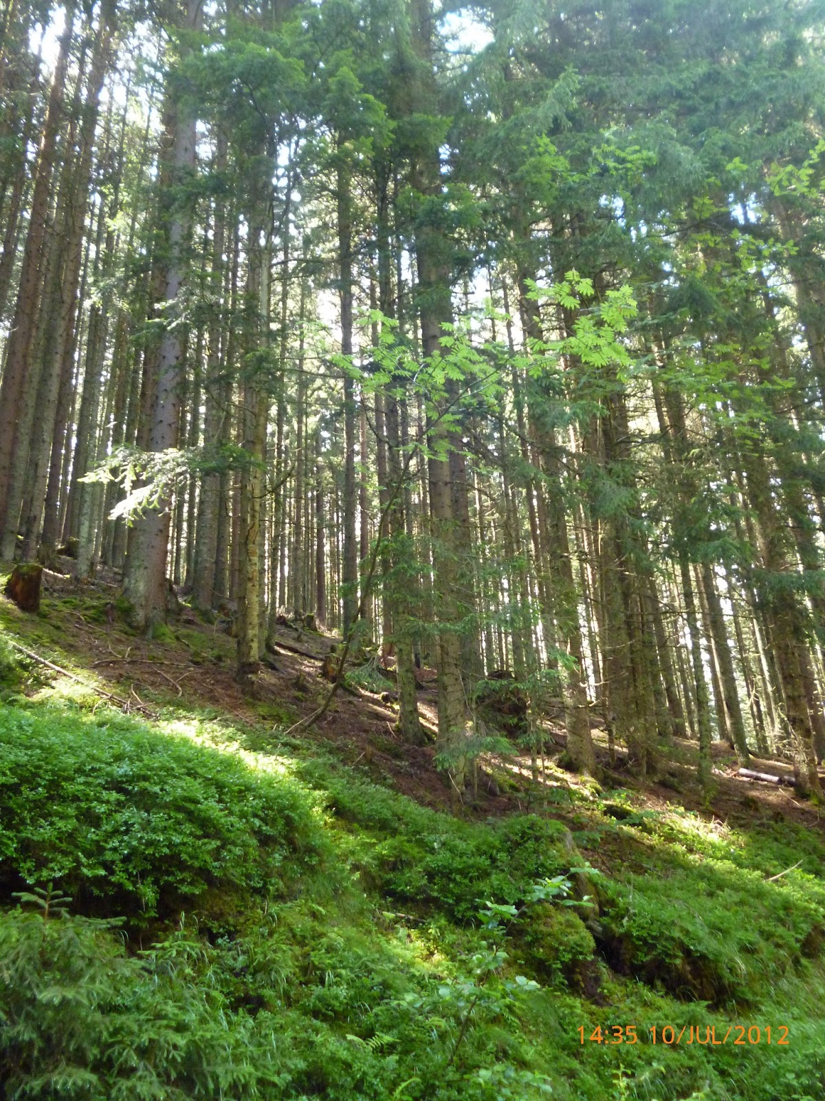 sade alkoi juuri, kun lähdin vaeltamaan vuorille. Kuin tilauksesta. Metsässä rapisi ja ropisi ja tuoksui ja oli hikisen märkää. Ilma huokui kuin hiillos. Olin märkä hiestä enkä vesisateesta ennen kuin pääsin puoliväliin vuorta. Maisemat sekä ylös vuorille että alas laaksoon pilvistä ja sateesta huolimatta salpaavat henge. On aivan sama sataako täällä vai ei, ympäristö on aivan sanoinkuvaamattoman kaunis. Sade tuo hehkuvan vihreyden esiin, aurinko saa järven kimaltelemaan kuin tuhannet timantit hangella. Hiljainen metsä, jossa kirkkaat kauriin silmät kurkistelevat jostain puiden oksistosta ja varovat herättämästä ohikulkevien mielenkiinnon. Matkalla ylös vuorille ei tosin kovin montaa matkalaista tullut vastaan. Kenties vesisade vaikutti vaellushalukkuuteen.