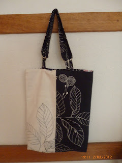 Verhonrenkaillekin löytyy käyttöä, kun ompelee kassin, johon sattuu tulemaan liian lyhyet kantohihnat. Olen niin kitsas, etten raaskisi leikata pitempiä kantohihnoja kuin mitä kankaan leveys sallii. Onneksi vanhojen verhojen renkaat olivat vielä tallella ja pistin ne kantohihnojen jatkeeksi. Nyt kassia on helpompi kantaa, kun se ylettyy hyvin olkapäille. tietenkin kassissa on ne tavanomaiset standarditarvikkeet eli vetoketjutasku ja avainrenksu.