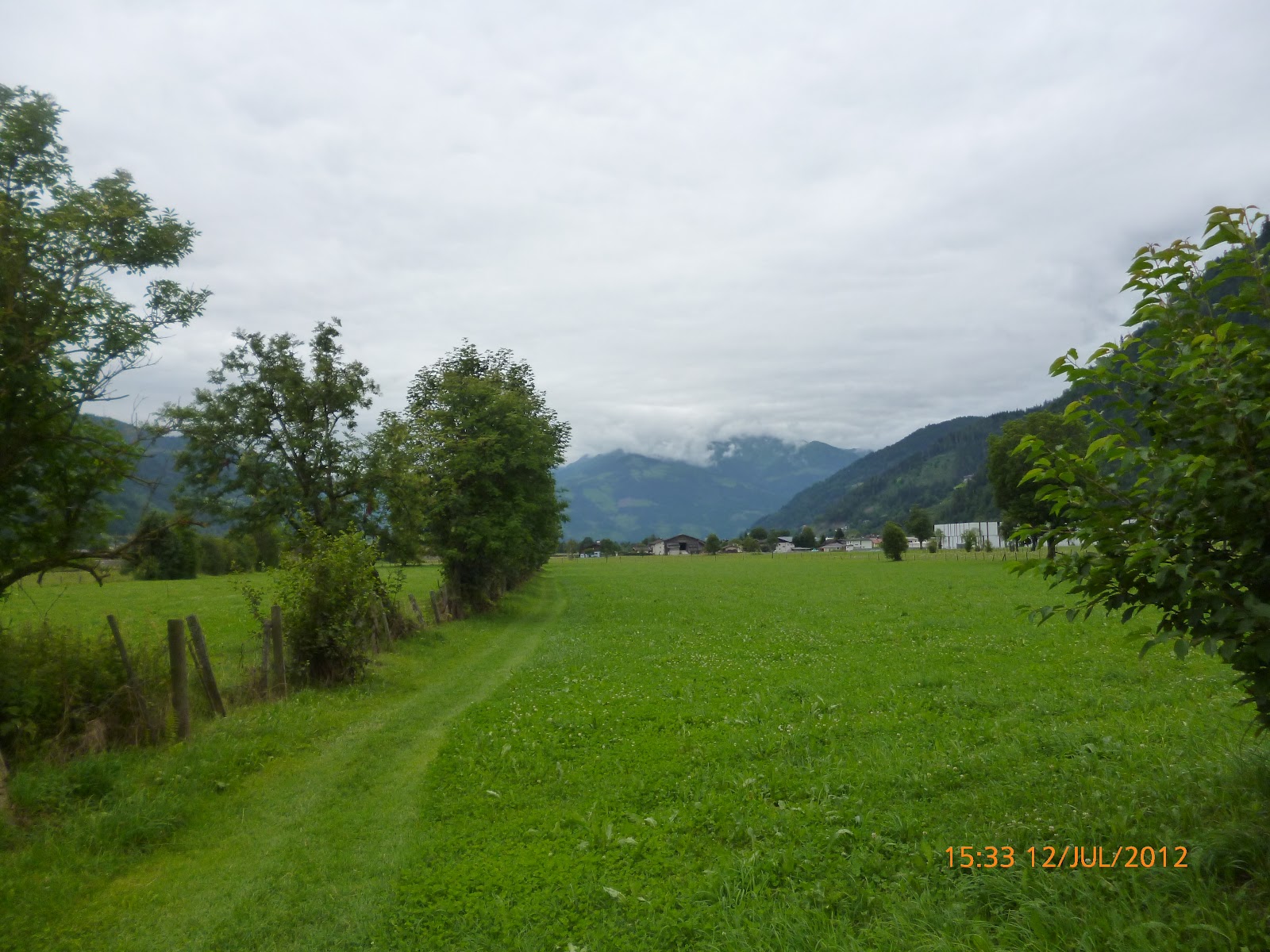 Hiki tuli pintaan, kun kävelin pistävässä auringonpaisteessa kymmenisen kilometriä, mutta hyvää se tekee jaloille ja keuhkoillekin. Sydän hakkaa entistä enemmän ja lihakset vahvistuvat. Tätä voisi kutsua ennaltaehkäiseväksi hoidoksi ennen leikkausta. Nautin upeista maisemista, vaikka pilvet valuivat paikka paikoin kuin harsovaippa pitkin vuoren rinnettä. Keskellä taivasta oli auringon mentävä aukko ja sieltä sitä lämpöä tuli kuin saunan uunista. Jalat kulkivat kuin itsestään. Olin päättänyt tehdä joka päivä vähintään 10 km kävely- tai pyöräilylenkin ja tänään suuntana oli Bruck.