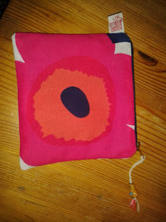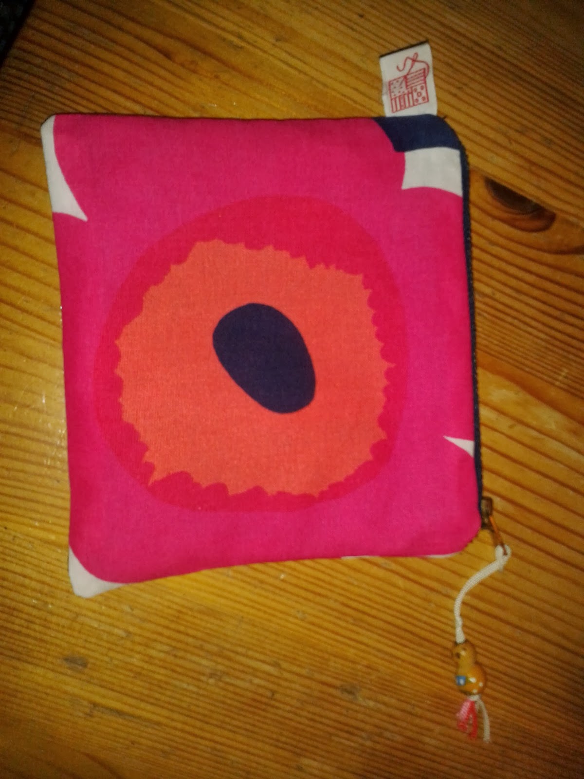 Ennen joulua ompelen yleensä jotain pientä lahjapakettien täytteeksi. Nyt on syntynyt liukuhihnatyönä Marikankaasta erikokoisia pussukoita. Osan olen jo lähettänyt matkaan enkä muistanut ottaa kuvia niistä, mutta kaikkihan Marikankaat tuntevat ja pussukat ovat aina pussukoita, mitä niitä kuvaamaan. Nappasin tähän yhden kuvan pikkupussukasta päivän iloksi. Tällaisia on helppo tehdä ja niitä on kiva antaa. Ainakin naisilla on käyttöä pienille pusseille käsilaukussa. On irtonaisia huulipunia, kynsilakkaa tai ostosvaunuihin sopivia chipsejä, jotka ovat yleensä aina kassin pohjalla eivätkä koskaan käsillä, kun niitä tarvitsee. Pikkupussit ovat käsilaukussa käteviä, kun ei tarvitse enää penkoa koko kassia ylösalaisin kotiportilla avainta etsiessä. Erivärisiin pusseihin voi laittaa tavarat jonkinlaisessa järjestyksessä niin, että muistaa vaikka, punaisen pussin olevan hätätapauksia varten; laastarit, hakaneulat jne . Vihreäpussi on meikkejä varten jne. Itselläni on käsilaukussa erilaisia pusseja, joista löytyy tavarat nopeasti eikä minun tarvitse junassa tai ratikassa esitellä koko laukkuni sisältöä naapurille.