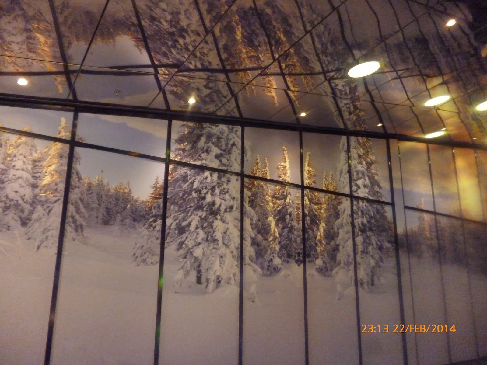 Frankfurtin talvimaisema sisätiloissa. Näyttää todella oikealta, varsinkin jos seinästä ottaa vain yhden paneelin kuvattavaksi;