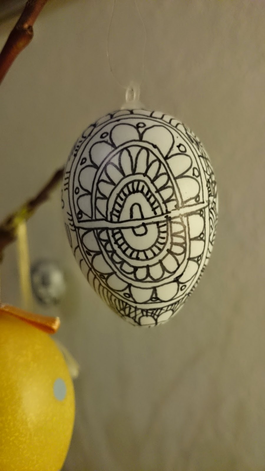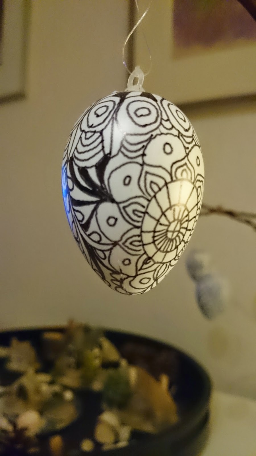 Tänään maalasin myös pääsiäismunat. Muoviset. Musta-valkoisiksi kuin pitkäperjantain tapahtumien varjossa. Silti mielestäni niissä on myös pääsiäisen ylösnousun sanomaa.